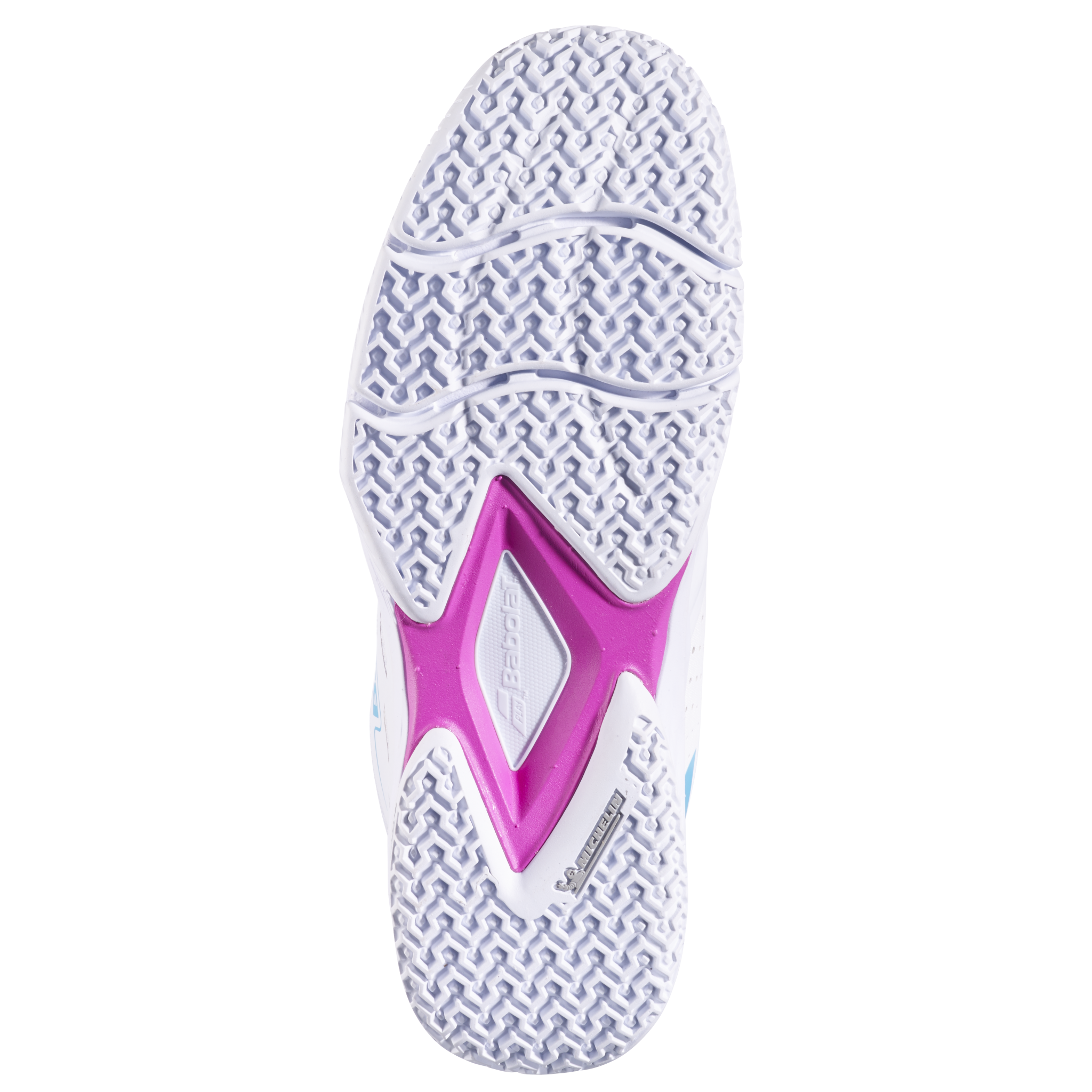The Babolat teams, in partnership with Michelin, have developed the first sole designed especially for Padel. This sole offers outstanding flexibility, thanks to the two grooves under the forefoot of the shoe (360 Flex technology) and maximum dynamism provided by a 100% padel stud pattern, perfect for sand and synthetic turf.